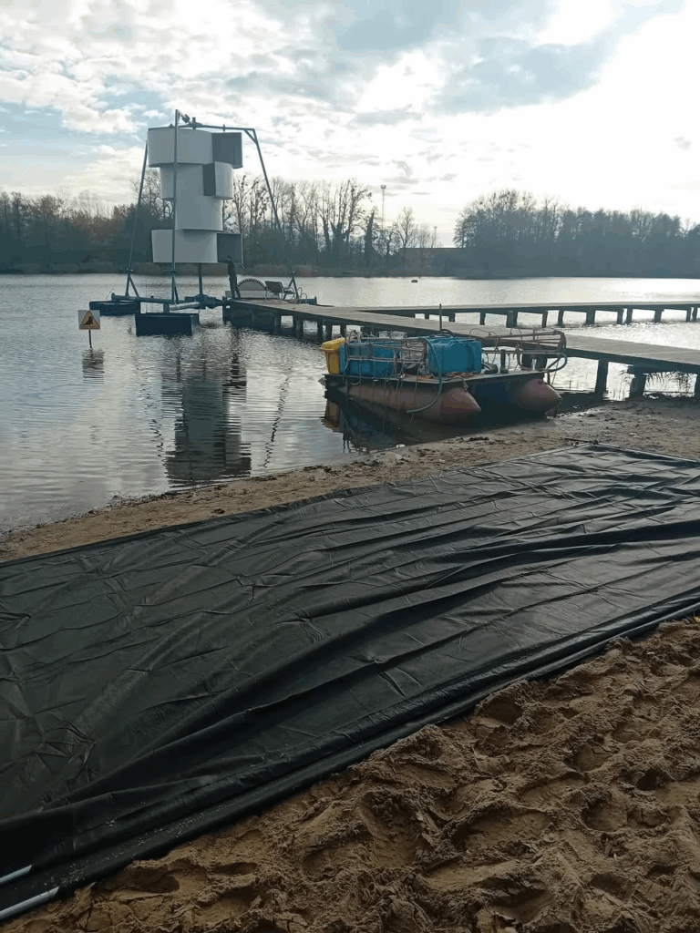 Ważnym elementem przedsięwzięcia było zamontowanie na dnie jeziora, tuż za pomostem w strefie kąpieliska, 162 m² mat stabilizujących osady denne, które mają na celu ograniczenie uwalniania fosforu z osadów, zapobieganie ich przemieszczaniu oraz ograniczenie nadmiernego wzrostu roślinności w strefie kąpieliska.