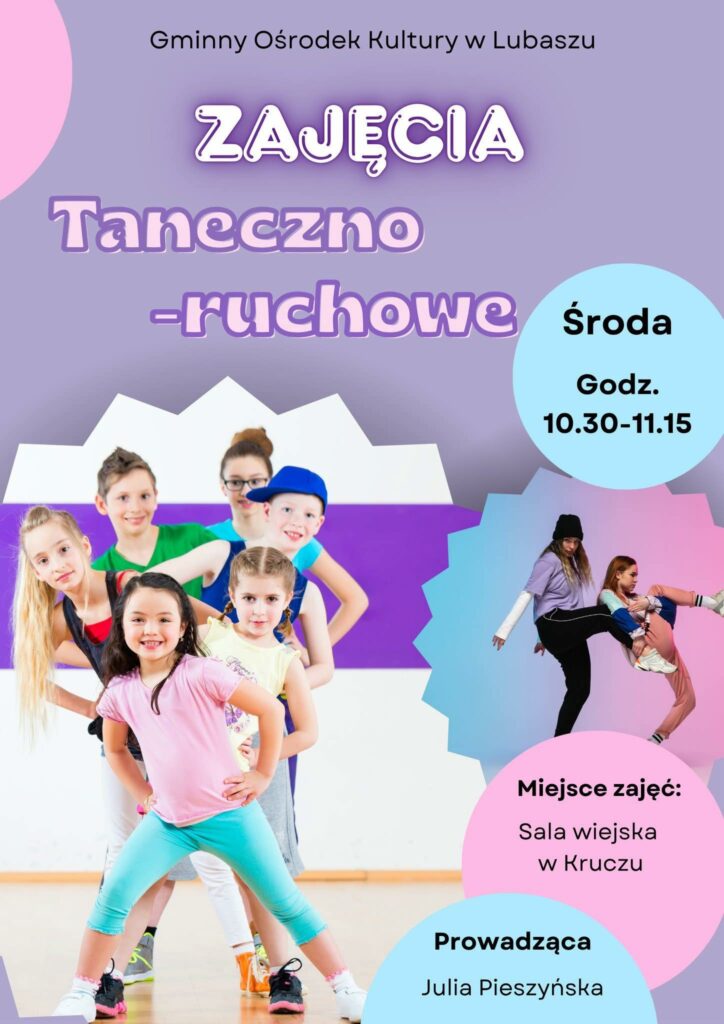 Z radością informujemy, że Gminny Ośrodek Kultury w Lubaszu, we współpracy ze szkołami w Miłkowie, Kruczu i Jędrzejewie, realizuje zajęcia taneczno-ruchowe dla dzieci z naszej gminy!