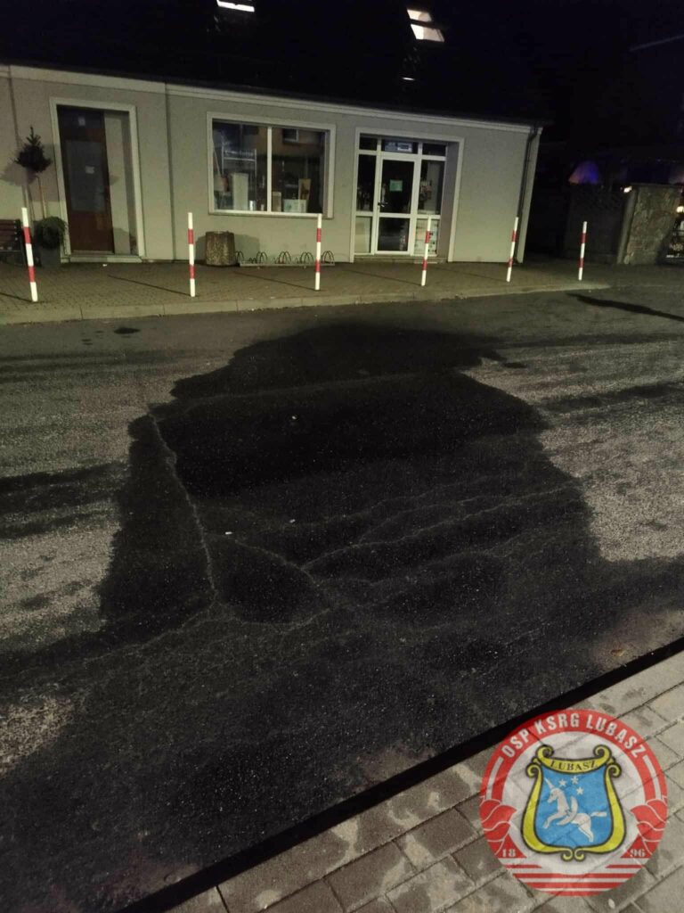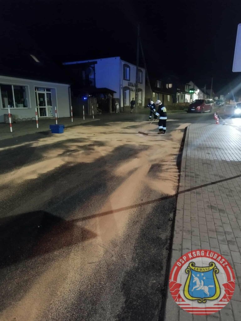 Dziś około godz. 20:00 służby ratunkowe i drogowe interweniowały w Lubaszu w związku z poważnym zanieczyszczeniem jezdni. Przy przystanku PKS na ulicy Chrobrego pojawiła się rozległa plama oleju, stwarzająca zagrożenie dla bezpieczeństwa ruchu drogowego.