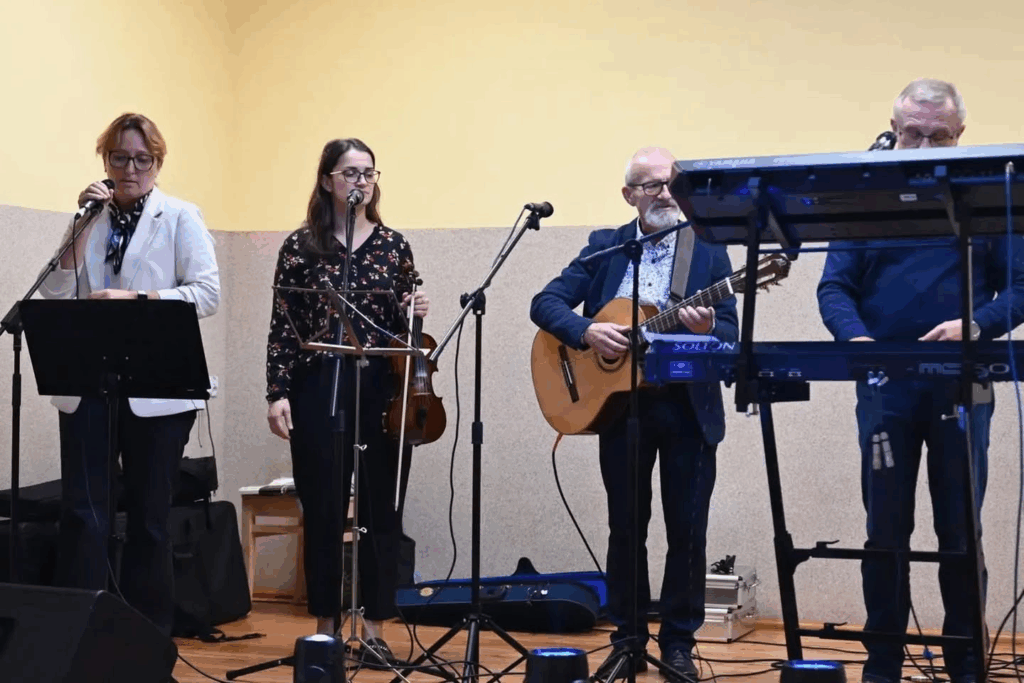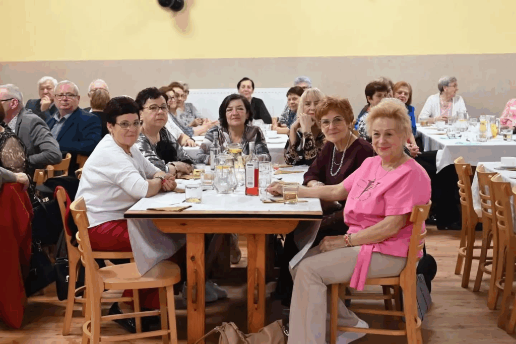 Po części oficjalnej uczestnicy wysłuchali koncertu zespołu „Póki co”, który swoim występem wprowadził zgromadzonych w pogodny, radosny nastrój. Muzyka zachęciła seniorów do śpiewu i wspólnej zabawy. Kontynuacją muzycznego wieczoru była oprawa przygotowana przez Adriana Orłowskiego, którego rytmiczne utwory szybko porwały gości na parkiet. Radość, śmiech i taniec wypełniły salę, potwierdzając, że energia i chęć świętowania nie znają wieku.